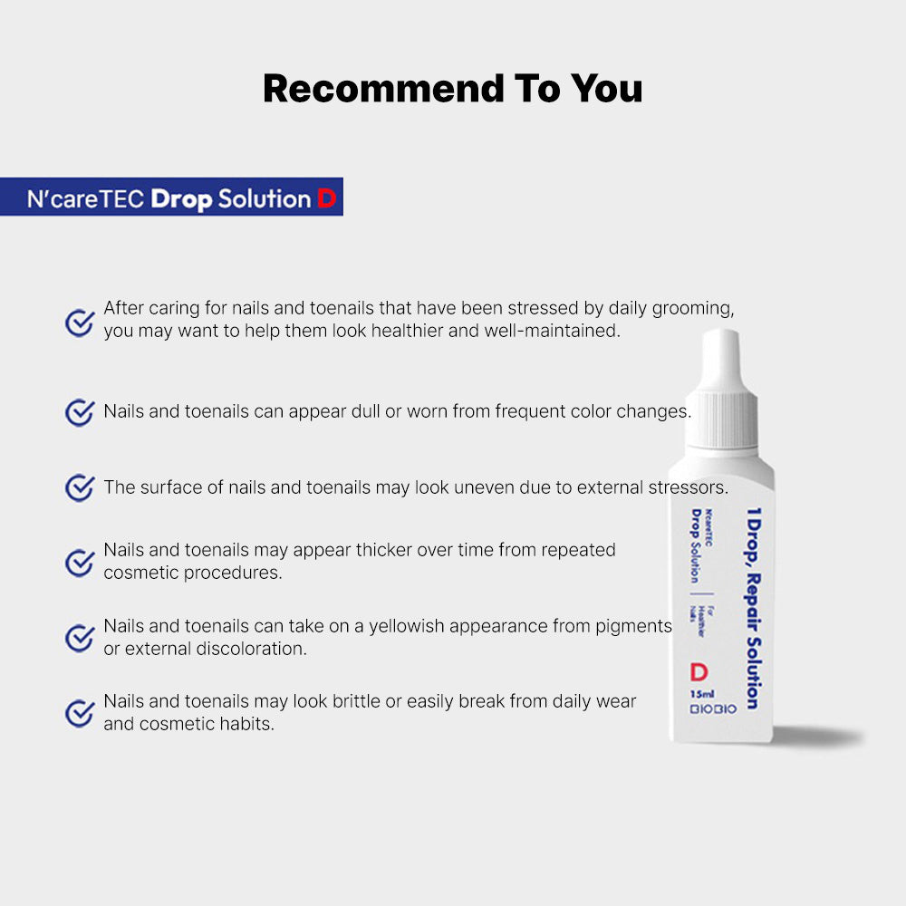 N'careTEC Drop SolutionD is a gentle nail and toenail care serum designed to support the appearance of thick, brittle, or discolored nails. This lightweight drop formula absorbs quickly to help condition dry cuticles and keep the nail surface hydrated. With consistent use, it helps improve the look of problematic nails and supports a cleaner, more refreshed nail appearance.